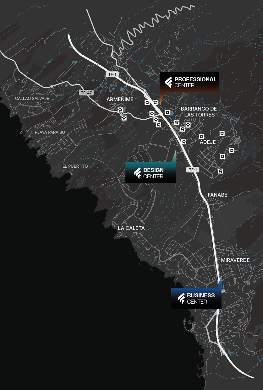 El entorno de Ferrari Professional Center está pensado para facilitar la actividad profesional desde el primer momento. La conexión directa con la autopista, los accesos cómodos y la cercanía a zonas consolidadas del sur de la isla convierten el centro en un punto estratégico para empresas que valoran la eficiencia y la operatividad.